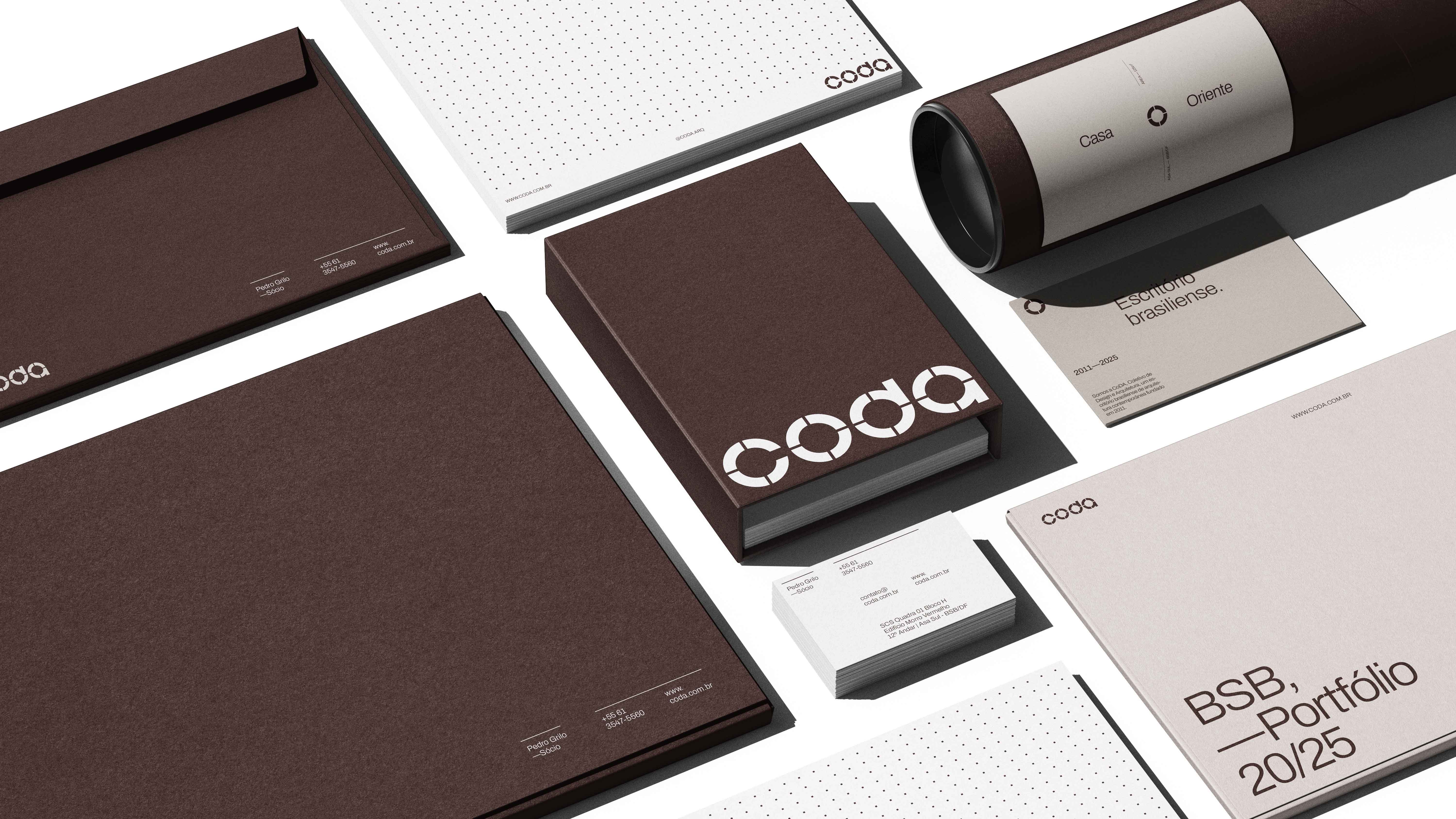 A CoDA é um escritório de arquitetura guiado pela síntese. Sua identidade nasce do modernismo brasiliense e se expressa por meio de projetos racionais, precisos e atemporais. A marca valoriza clareza, estrutura e coerência como princípios centrais de atuação.